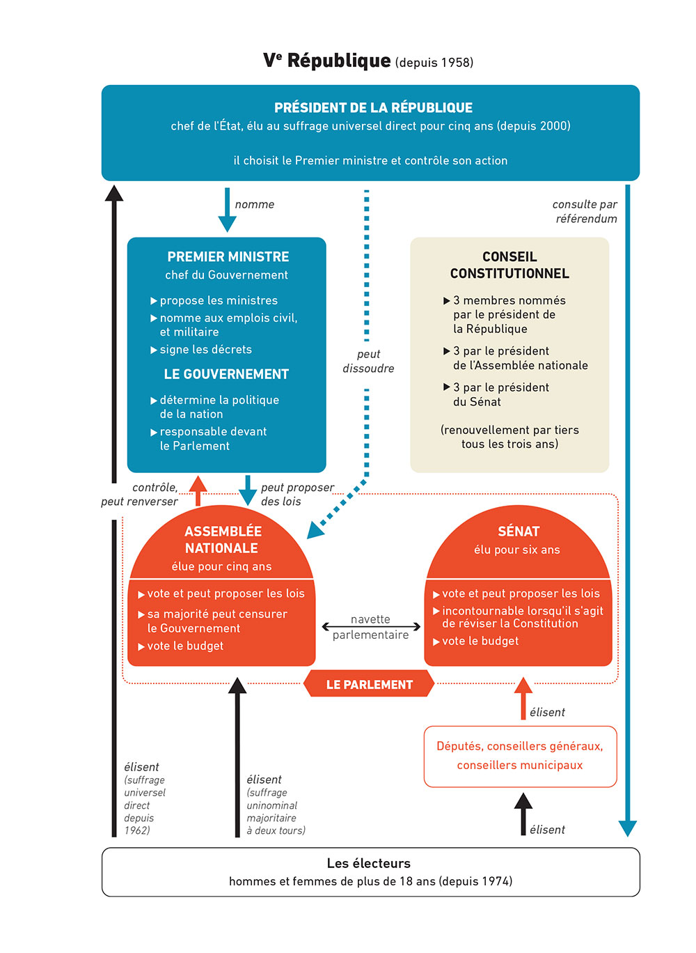 La Ve République naît dans un contexte d’effondrement des institutions de la IVe République. Avec Michel Debré et le général de Gaulle, un régime fort est instauré pour restaurer l’autorité de l’État. - 1962 : Le président monarque