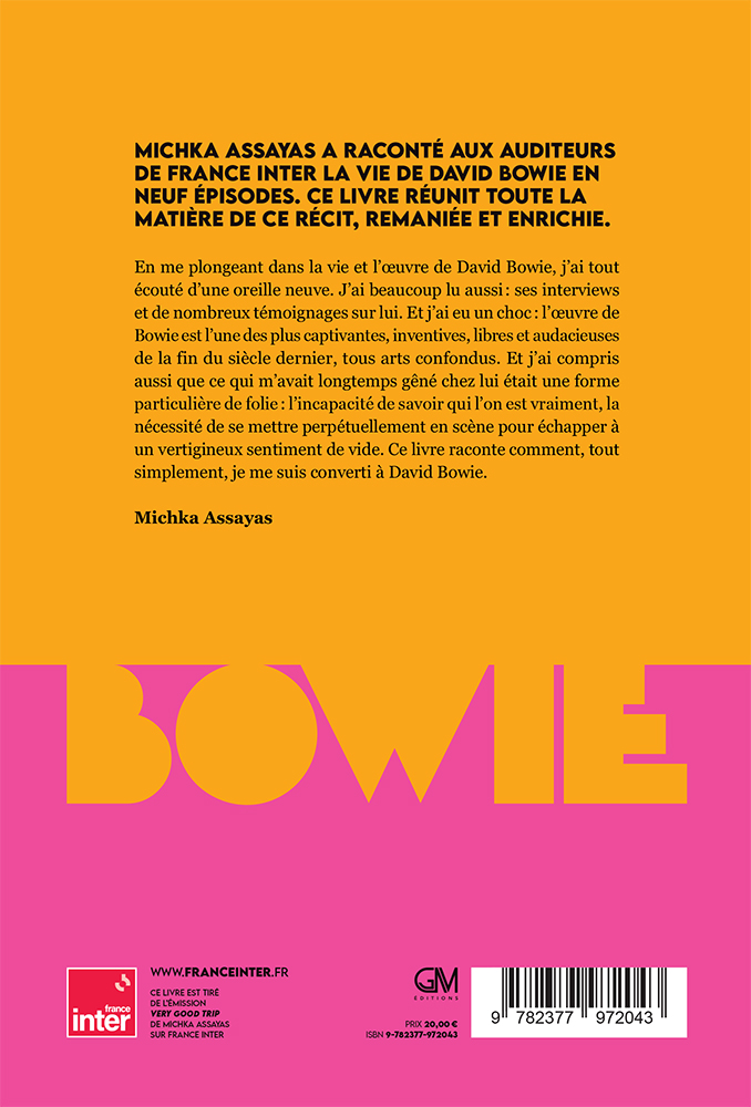 Michka Assayas a raconté aux auditeurs de France Inter la vie de David Bowie en neuf épisodes. Ce livre réunit toute la matière de ce récit, remaniée et enrichie.
