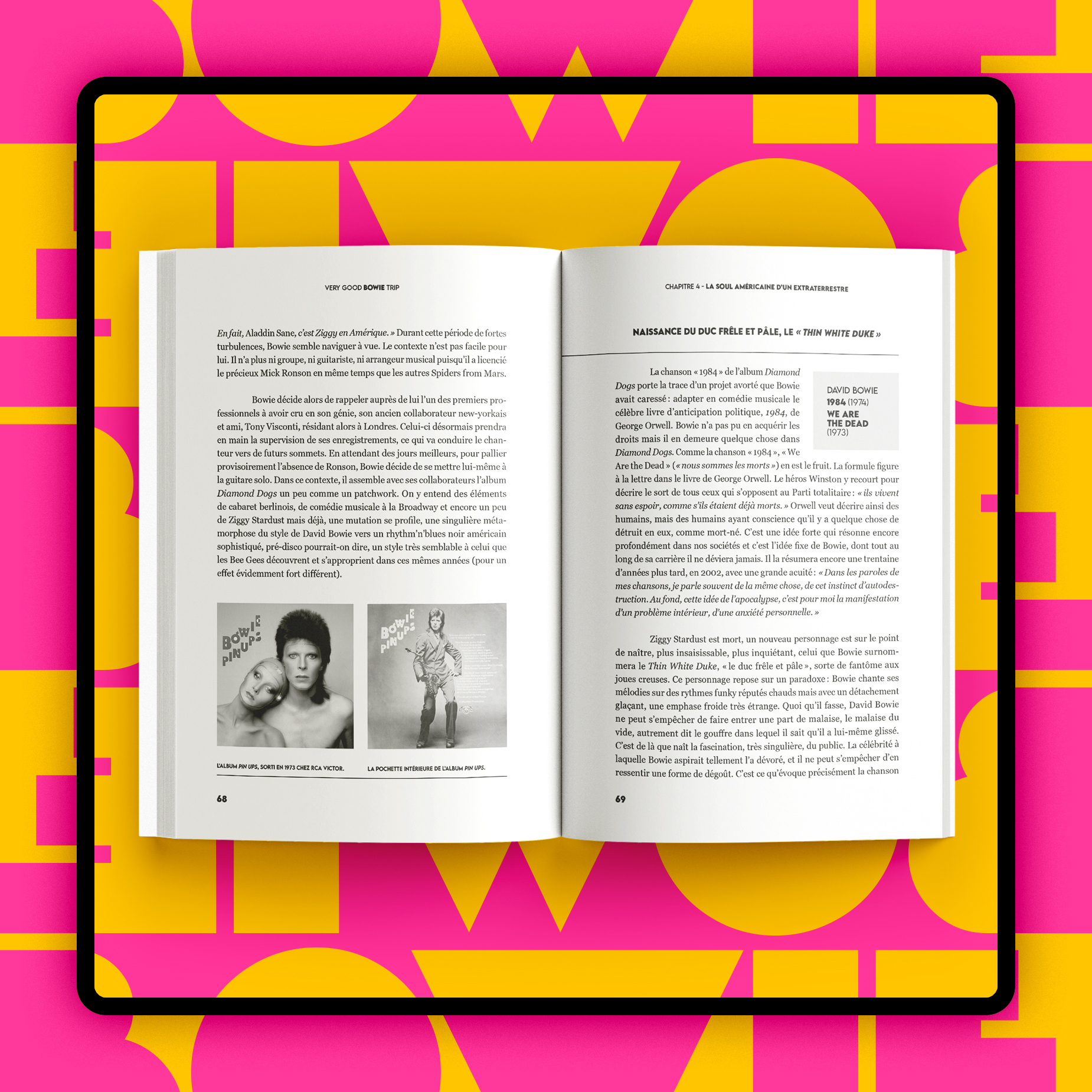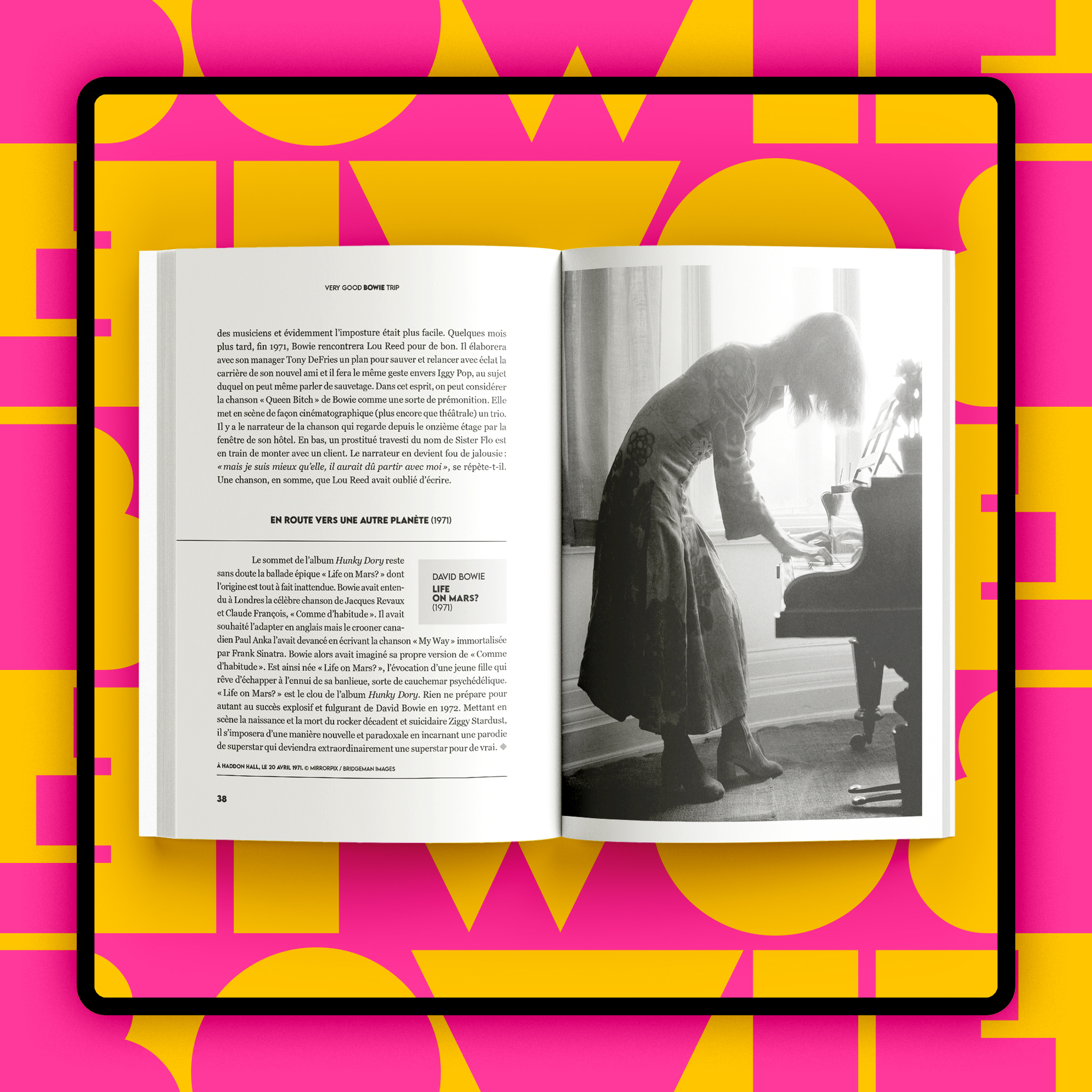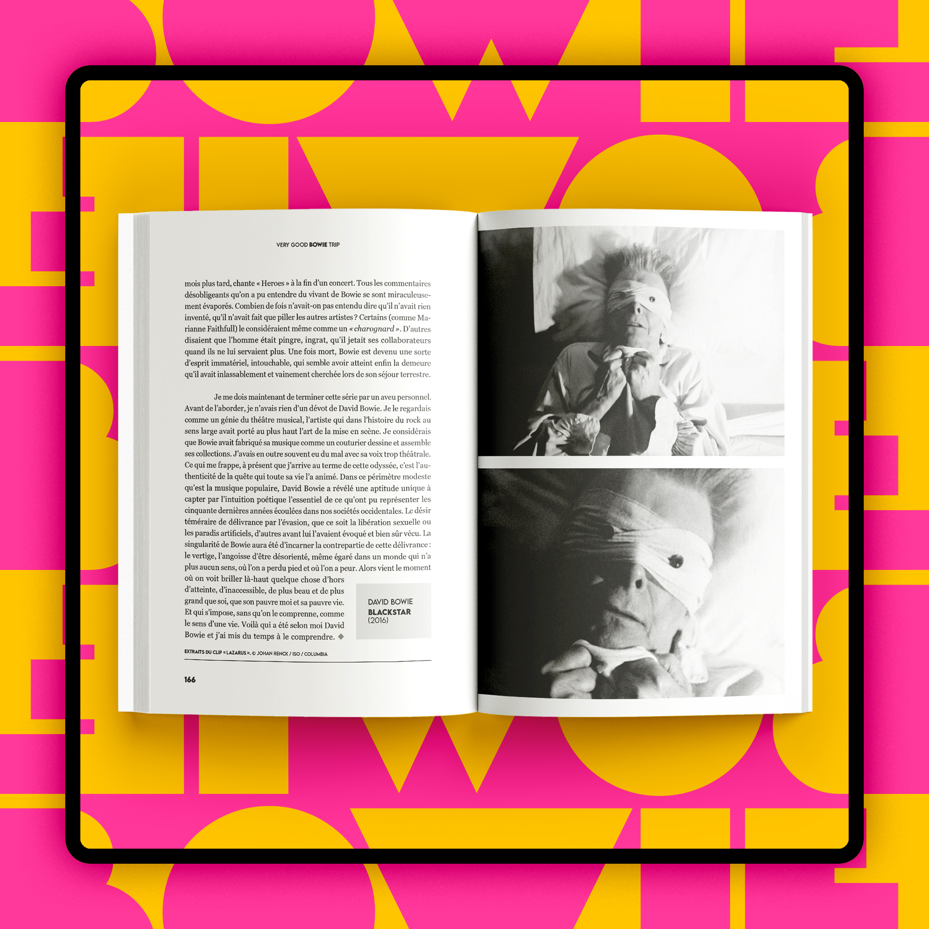 En me plongeant dans la vie et l’œuvre de David Bowie, j’ai tout écouté d’une oreille neuve. J’ai beaucoup lu aussi : ses interviews et de nombreux témoignages sur lui. Et j’ai eu un choc : l’œuvre de Bowie est l’une des plus captivantes, inventives, libres et audacieuses de la fin du siècle dernier, tous arts confondus. Et j’ai compris aussi que ce qui m’avait longtemps gêné chez lui était une forme particulière de folie : l’incapacité de savoir qui l’on est vraiment, la nécessité de se mettre perpétuellement en scène pour échapper à un vertigineux sentiment de vide.