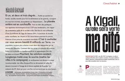 Du Rwanda au Sikkim en passant par l’Ecosse ou Israël, nos journalistes ont traqué les initiatives et les projets prometteurs. Des reportages complétés par l’expertise des meilleurs spécialistes du climat, de l’écologie ou de la recherche avec notamment : Nicolas Bricas, socioéconomiste de l’alimentation, chercheur et titulaire de la Chaire Unesco Alimentations du monde ; Aurélien Barrau, professeur à l’université de Grenoble-Alpes, astrophysicien au Laboratoire de physique subatomique et de cosmologie ; Nicolas Hulot, ancien Ministre de l’Ecologie…