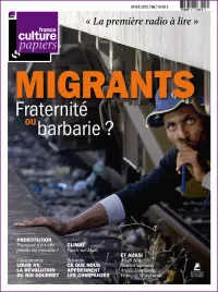 Ce mois-ci, France Culture Papiers s’intéresse à des questions d’actualité : les migrants (fraternité ou barbarie ?), la prostitution (pourquoi n’a-t-elle jamais été interdite ?), le réchauffement climatique (sur quelles planètes pourrons-nous nous réfugier ?). À découvrir également au sommaire de ce numéro : un long entretien avec Arielle Dombasle, la vie nocturne de Bombay, l’hypnose et son effet sur le cerveau… Science, histoire, religion, actualité, cinéma, revivez le meilleur de France Culture !