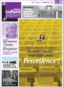 France Culture Papiers depuis son lancement fin février 2012 est la première revue culturelle réalisée à partir d’émissions de radio, retranscrites, éditorialisées, illustrées et enrichies. Parmi plus de 2 000 heures d’antenne trimestrielles, plus d’une centaine d’émissions et de chroniques et près de 3 500 invités, France Culture Papiers propose chaque trimestre une sélection des meilleurs débats culturels, scientifiques, artistiques et politiques entendus sur l’antenne de France Culture.
