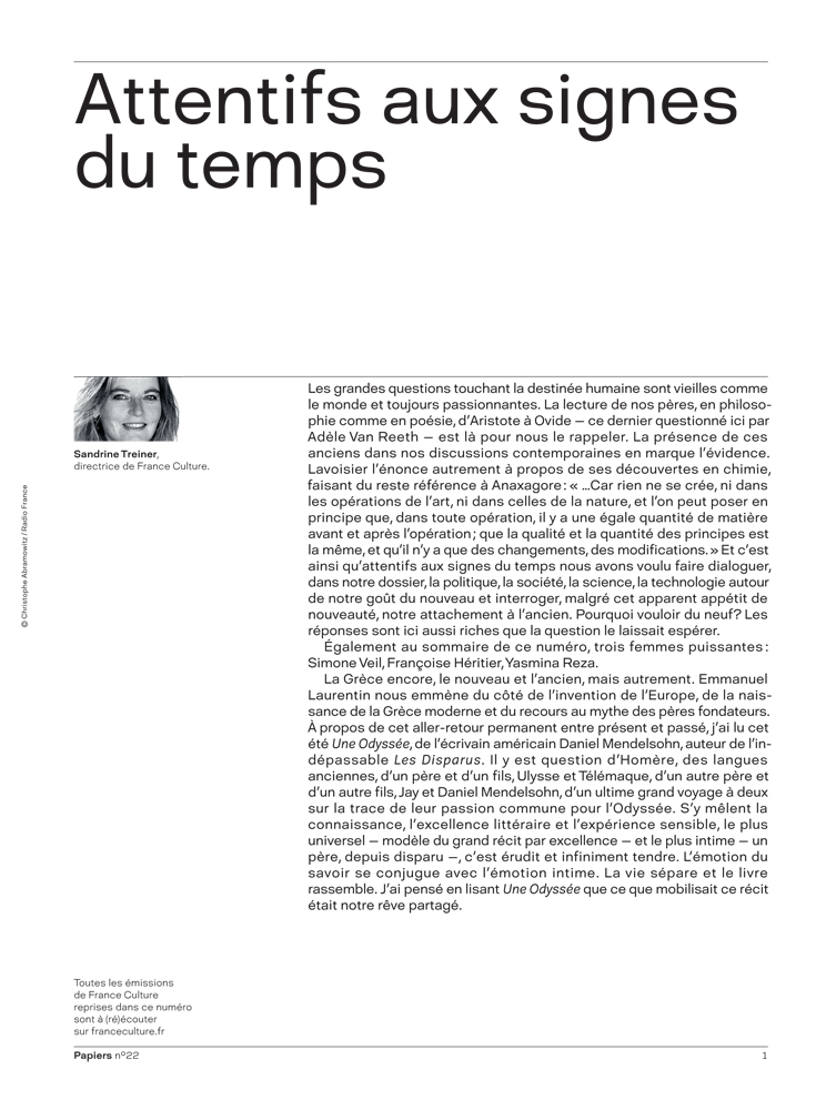 De l’antenne de France Culture, Adèle Van Reeth, Etienne Klein, Jean-Noël Jeanneney, un grand entretien « À voix nue » avec le psychiatre Christophe André, des éclats d’actualité du trimestre écoulé, et les choix culturels des producteurs de France Culture etc.