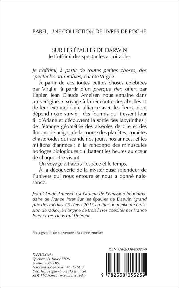 À partir de ces toutes petites choses – les abeilles – célébrées par Virgile, à partir d’un presque rien – un flocon de neige – offert par Kepler, Jean Claude Ameisen nous entraîne dans un vertigineux voyage.