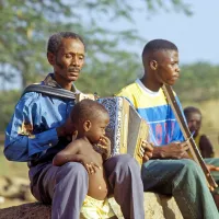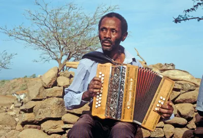 Kodé di Dona brings funana tradition to life, recounting (often critically) the hardships of everyday life, to a driving rhythmic backing and lively, melodic accordion accompaniments: a rural art fed with mazurka, waltz, quadrille, samba, coladeira…