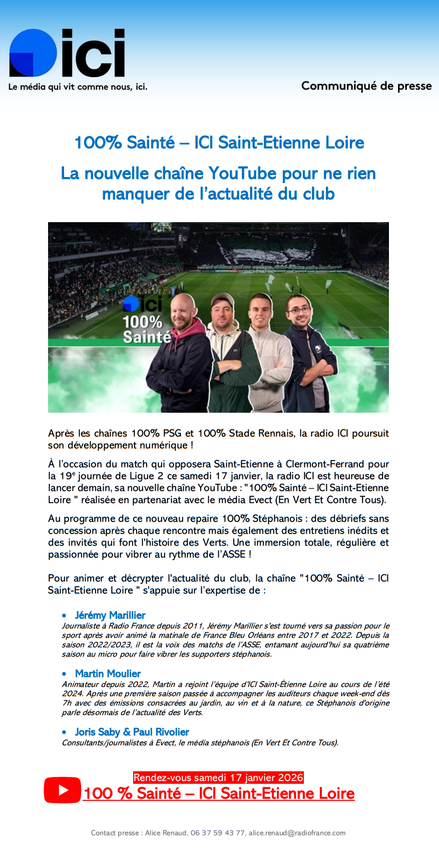 100% Sainté – ICI Saint-Etienne Loire : la nouvelle chaîne YouTube pour ne rien manquer de l’actualité du club