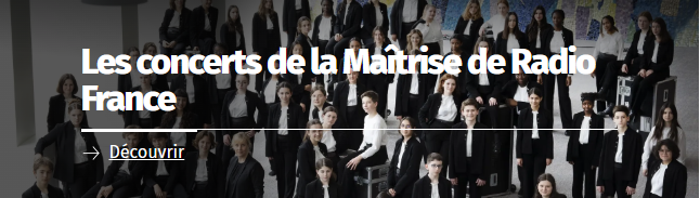 Formation permanente de Radio France aux côtés de l’Orchestre National de France, l’Orchestre Philharmonique et le Chœur de Radio France, la Maîtrise de Radio France se produit au meilleur niveau artistique dans le cadre de concerts professionnels qui constituent l’aboutissement pédagogique de l’enseignement reçu. Exigence et excellence sont ainsi, avec la découverte de l’art choral et l’épanouissement artistique, les maîtres-mots du cursus maîtrisien.