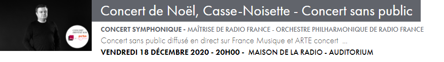 VENDREDI 18 DÉCEMBRE - 20H sur France Musique et ARTE concert depuis l'Auditorium de Radio France