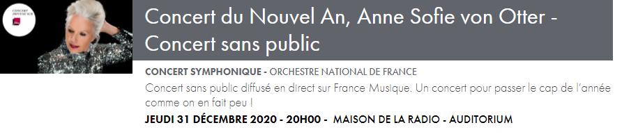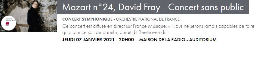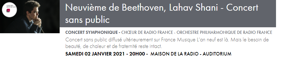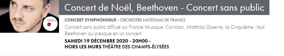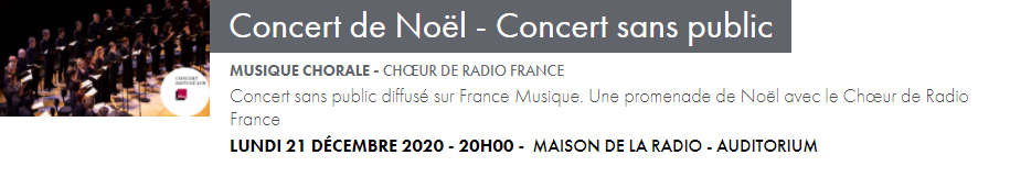 Les enregistrements continuent et tous les concerts des formations musicales prévus jusqu’au 7 janvier seront diffusés en audio sur France Musique, et en vidéo sur francemusique.fr et ARTE Concert.