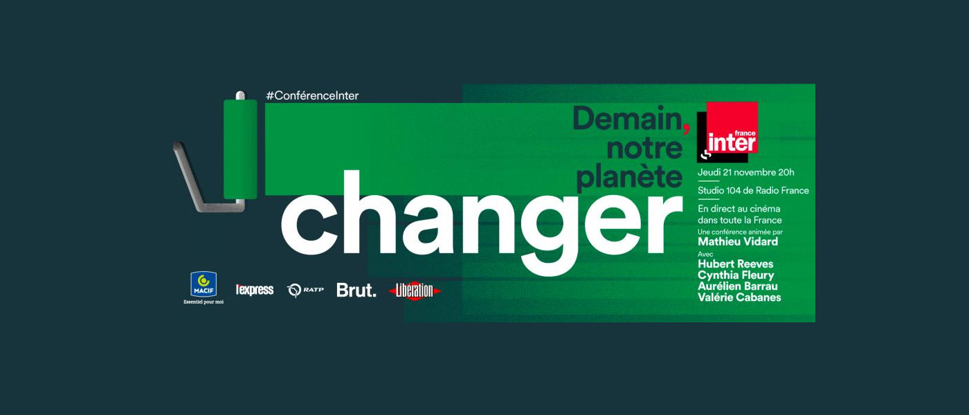 Après le succès des deux précédents cycles de conférences « Bien vivre ensemble » et « Le cerveau » qui ont rassemblé 81 000 spectateurs, France Inter entame un 3ème cycle « Demain, notre planète » avec 3 angles cruciaux : « changer », « se nourrir » et « respirer ». « Changer », cette première conférence tentera de répondre aux questions que l’on se pose : comment se mettre en mouvement pour engager une transition durable ? Comment changer nos modes de vie et rêver le monde de demain ?