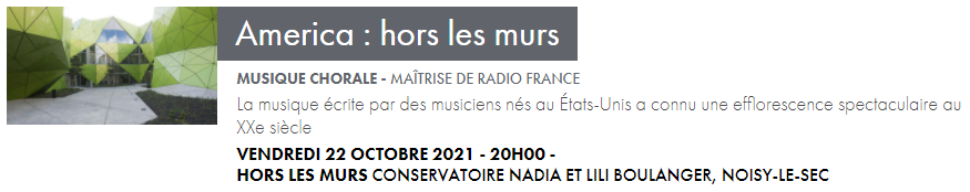 VENDREDI 22 OCTOBRE - 20H00 - HORS LES MURS - Conservatoire Nadio et Lili Boulanger, Noisy-le-Sec