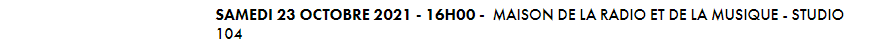 SAMEDI 23 OCTOBRE - 11H00 et 16H00 - Studio 104