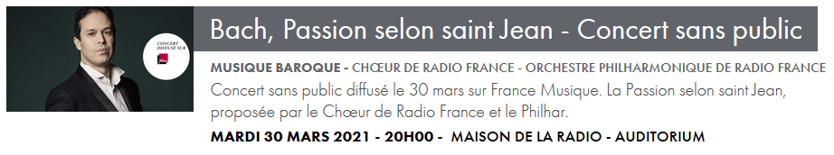 MARDI 30 MARS - Diffusion à 20h sur France Musique