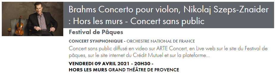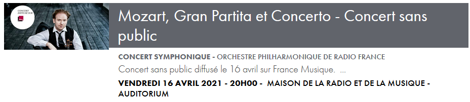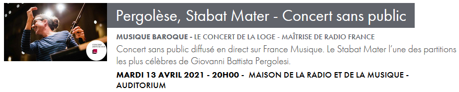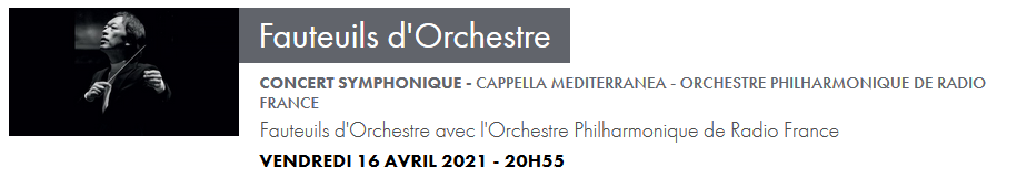 VENDREDI 16 AVRIL - Diffusion à 20h sur France Musique