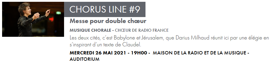 DARIUS MILHAUD / Les Deux Cités opus 170 THIERRY MACHUEL / À l’humaine poésie… (commande de Radio France – création mondiale) FRANK MARTIN / Messe pour double chœur