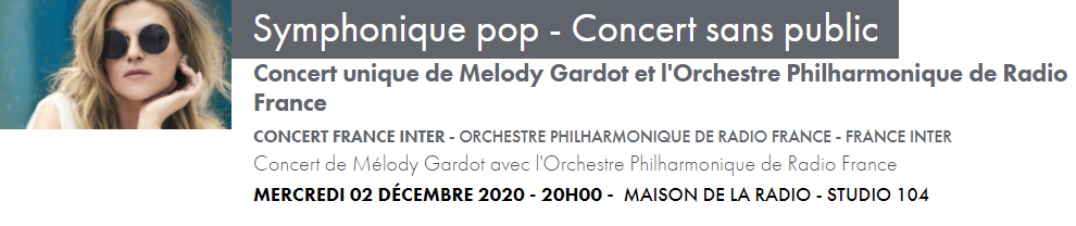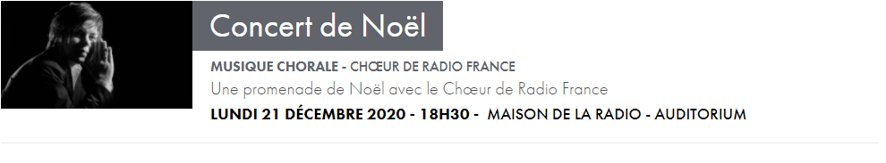 Tous les concerts des formations musicales prévus du 1er au 15 décembre 2020 seront diffusés en audio et vidéo en direct ou différé sur les antennes de Radio France, France Musique, francemusique.fr, France Inter et ARTE Concert.