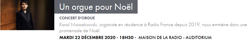 MERCREDI 30 DÉCEMBRE - Auditorium - concert sans public enregistré le 6 décembre