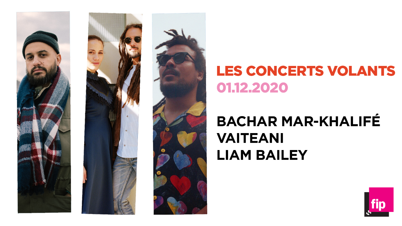 Les Concerts Volants accueilleront trois artistes aux semelles de vent. Le premier a été découvert sur Fip cet été, c’est Liam Bailey. Sur son dernier album Ekundayo, le songwriter britannique mêle au reggae, une soul sensible et un R&B mélancolique. Le second est un habitué de l'antenne de Fip, c’est le chanteur et multi-instrumentiste franco libanais Bachar Mar-Khalifé qui vient de sortir l’excellent album On/Off. Enfin, ce concert volant sera l’occasion de découvrir la pop folk polynésienne du duo Vaiteani.