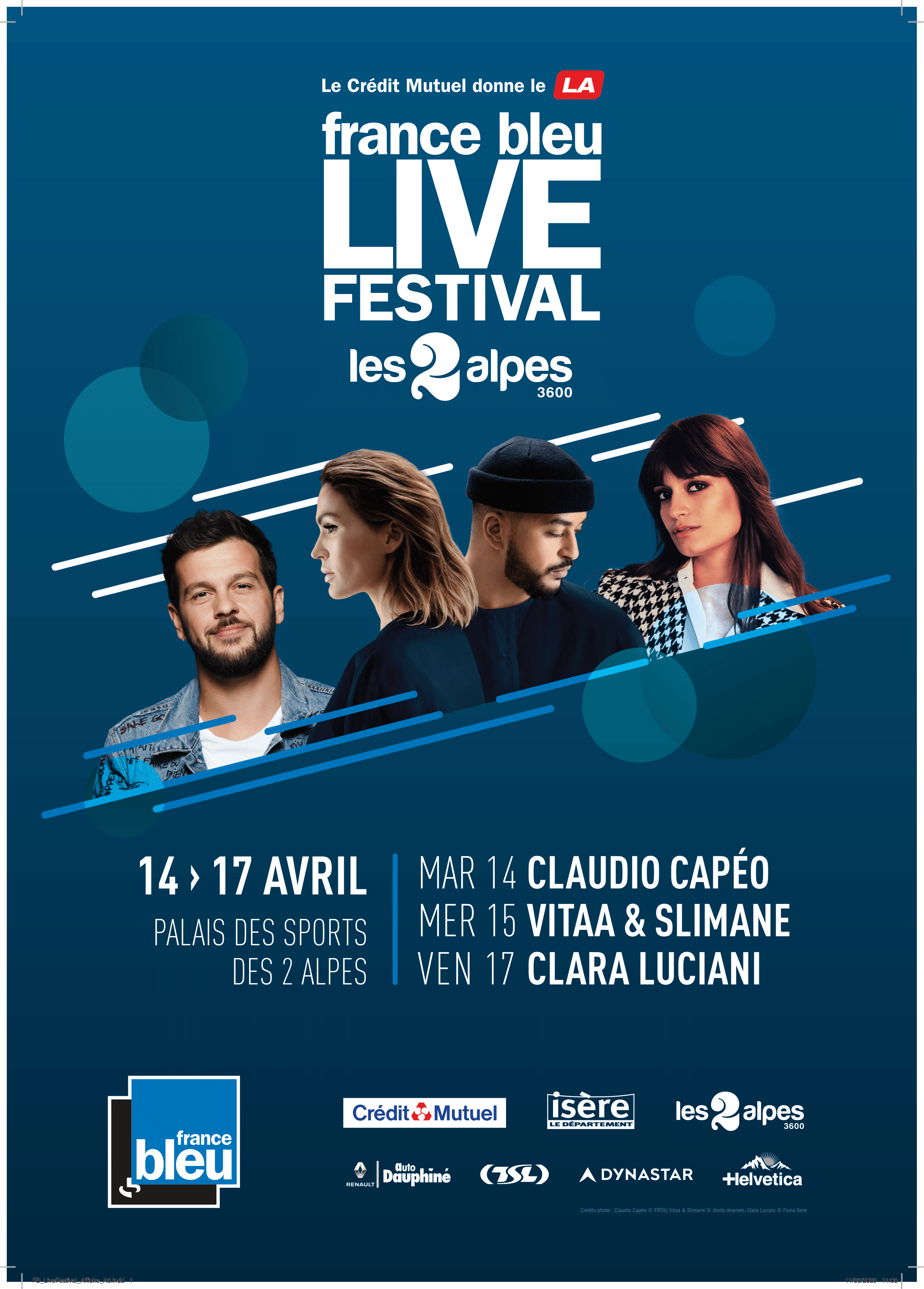 France Bleu et la station des 2 Alpes tiennent chaleureusement à remercier leurs partenaires ainsi que Claudio Capéo, Vitaa, Slimane, Jean-Louis Aubert et Clara Luciani qui ont répondu présents pour le France Bleu Live Festival et leur donnent rendez-vous prochainement.