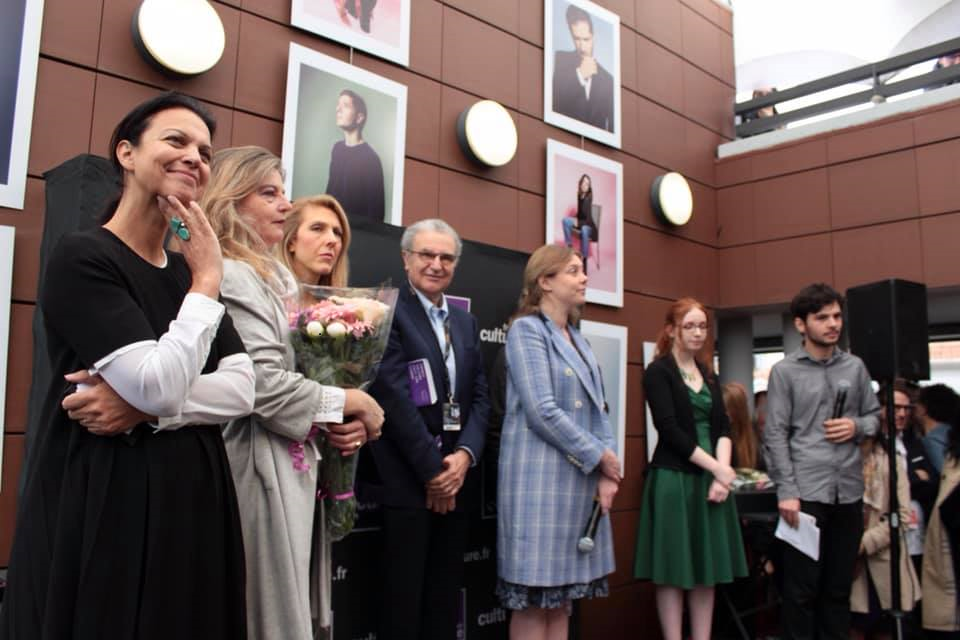 Remise des Prix France Culture Cinéma avec Clara Royer (Prix étudiant) Margaret Menegoz (Prix consécration), Stéphane de Freitas et Ladj Ly (Prix International Students Award UniFrance/France Culture), et en présence de deux jurés étudiants, Sandrine Treiner, directrice de France Culture, Sybile Veil, PDG de Radio France, Isabelle Giordano et Serge Toubiana d’UniFrance.