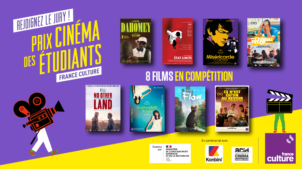 France Culture lance la nouvelle édition des Prix Cinéma des étudiants et révèle la sélection des films en compétition, en partenariat avec Konbini et l’Association du Cinéma Indépendant pour sa Diffusion (ACID) et avec le soutien du ministère chargé de l’Enseignement supérieur et de la Recherche.