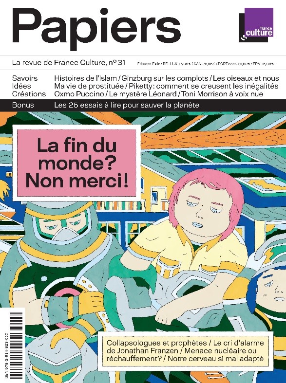 Au sommaire : Un grand dossier « La fin du monde, non merci ! ». Comment apprendre à vivre avec l’imminence de l’apocalypse ? Notre cerveau nous entraîne-t-il vers l’abîme ? L’effondrement signifie-t-il forcément la fin du monde ou peut-il être souhaitable ? Et, en bonus, une sélection de 25 essais à lire pour sauver la planète proposés par les producteurs de France Culture avec le mot de la fin d’Aurélien Bellanger. Mais aussi, une enquête sur l’histoire de l’Islam, le mystère de l’œuvre de Léonard de Vinci et l’expérience inédite d’Emma Becker, prix du Roman des étudiants France Culture-Télérama 2019, pour La Maison (éditions Flammarion).