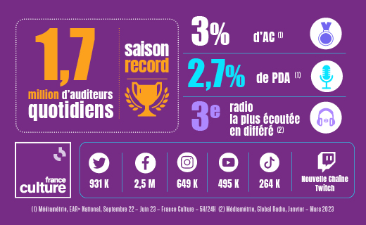 - 1 686 000 auditeurs écoutent quotidiennement l’antenne de France Culture