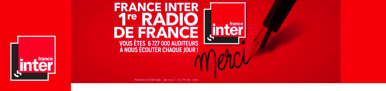 Avec 6 727 000 auditeurs et une audience cumulée de 12.3%, France Inter confirme sa place de 1re radio de France pour la 9e fois consécutive. Elle enregistre une PDA de 13.3%.