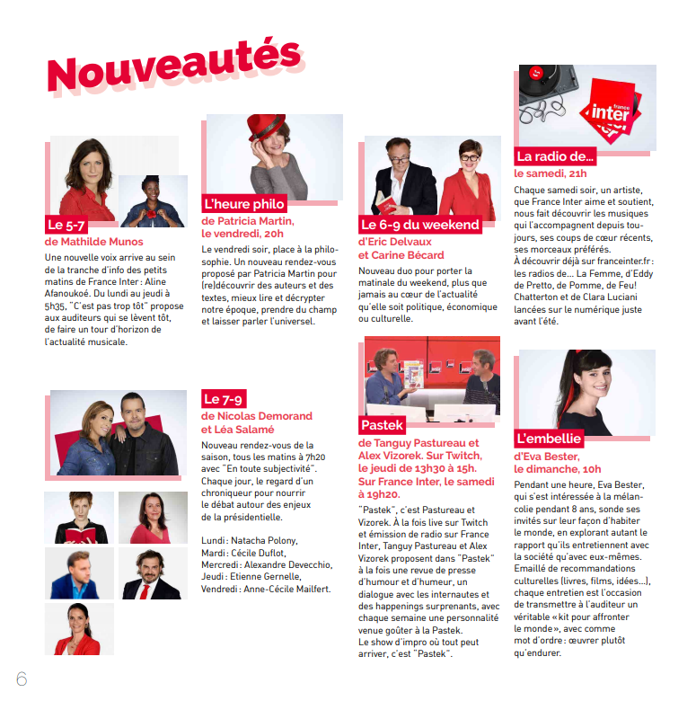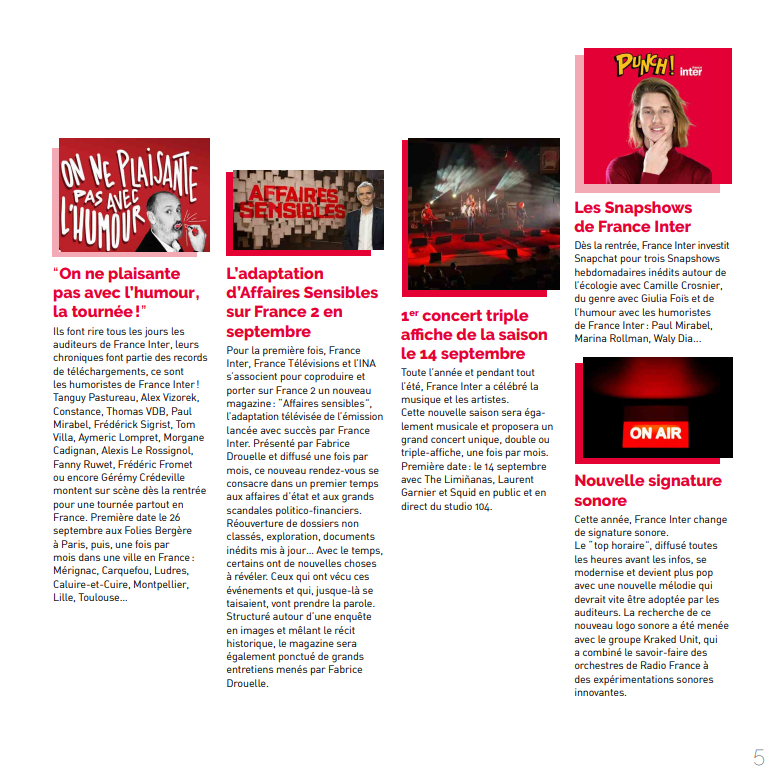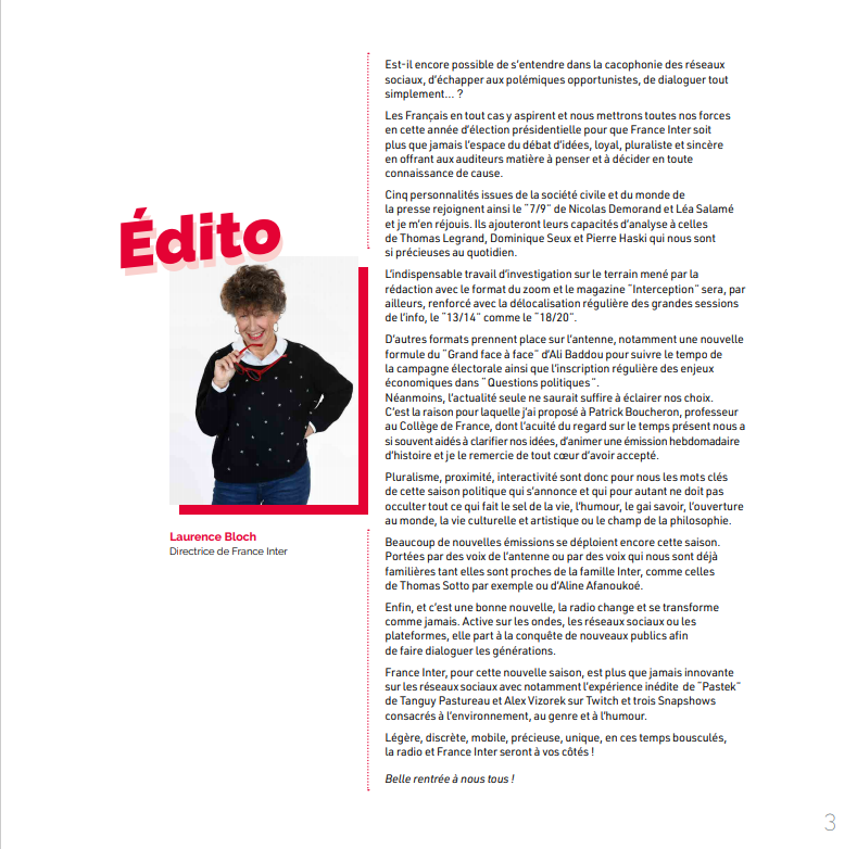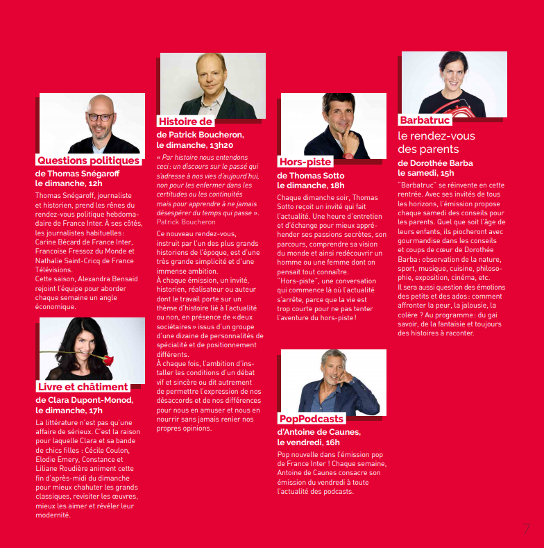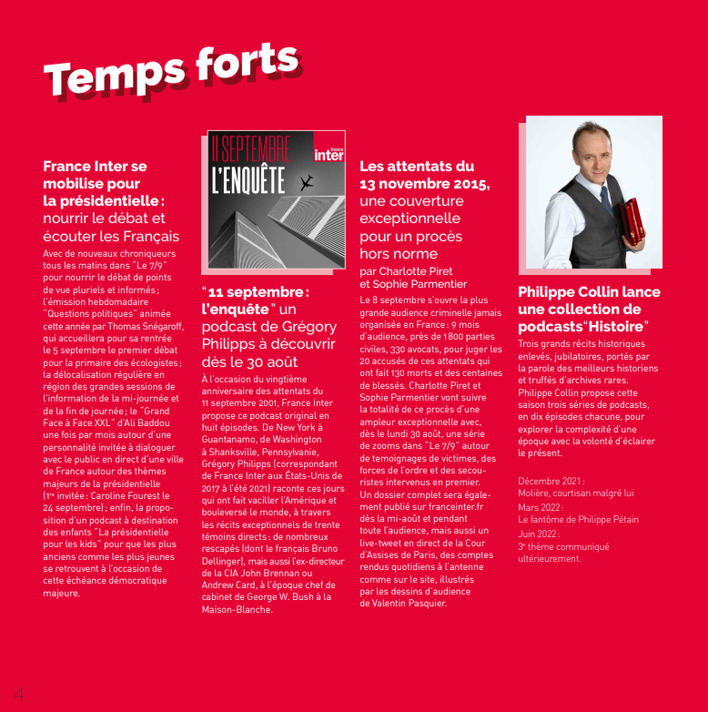 France Inter / Dossier de presse de rentrée 2021-2022 Publié le 25.08.2021 La rentrée de France Inter 2021/2022 La rentrée sur France Inter, c'est le lundi 30 août ! Cliquez sur l'image pour télécharger le dossier de presse de la saison 2021/2022 de France Inter pdf