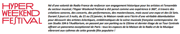Ce concert, en plus de la version stéréo traditionnelle diffusée en direct sur France Musique, est proposé en son 3D (ou son binaural). A écouter muni d’un casque audio sur francemusique.fr.