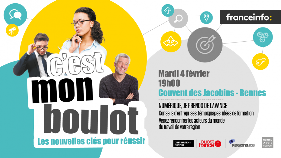 Avec Frédéric Sévignon, directeur régional de Pôle emploi Bretagne, François Fillatre, consultant relations entreprises à Rennes et Pauline Fouqué, responsable DRH chez Digitaleo