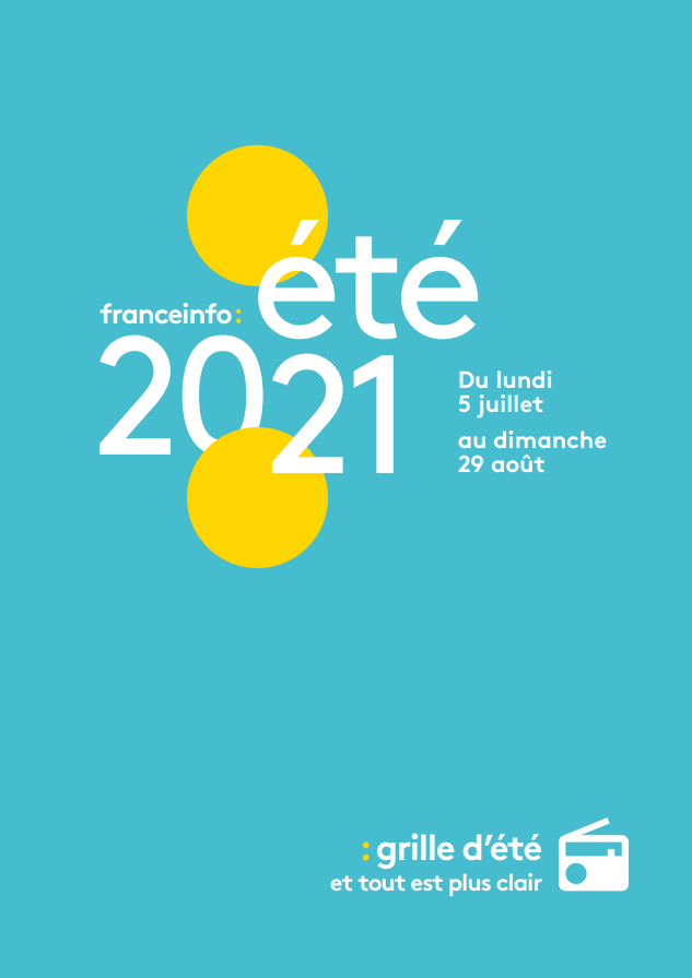 franceinfo : grille d'été 2021 à découvrir dès le 5 juillet Publié le 10.06.2021 L’été 2021 sur franceinfo Du 5 juillet au 29 août Pour consulter le dossier, cliquez sur l'image ci-dessous : Retrouvez toute l'actualité du média global franceinfo : radio, TV Canal 27 et numérique sur le compte twitter @franceinfo pro PLUS VIDEO Contacts presse : Anaïs Robert. . Carine Talbot. . Alice Vogel. . pdf