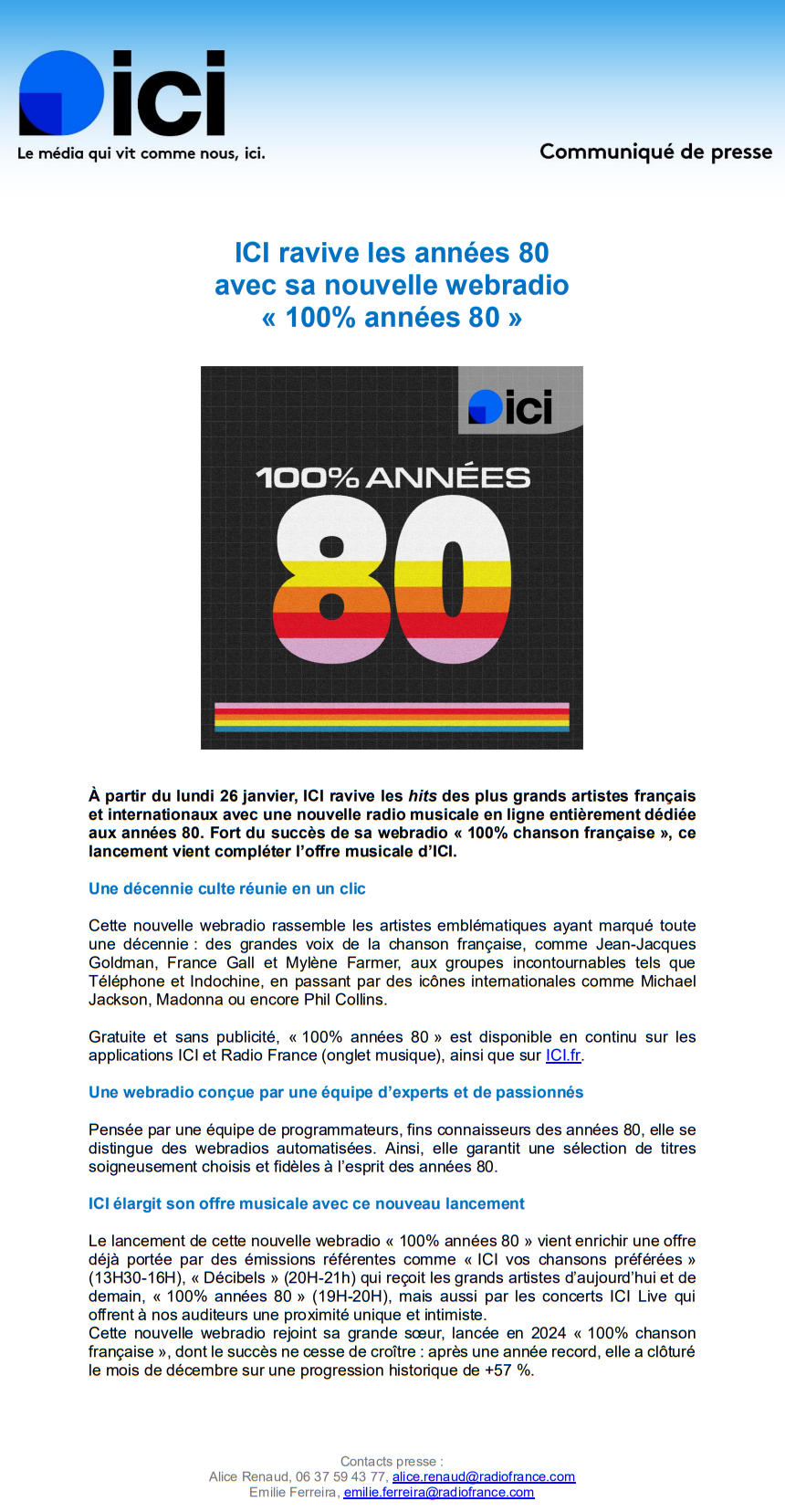 ICI ravive les années 80 avec sa nouvelle webradio "100% années 80" Publié le 26.01.2026 • pdf primp16396.pdf