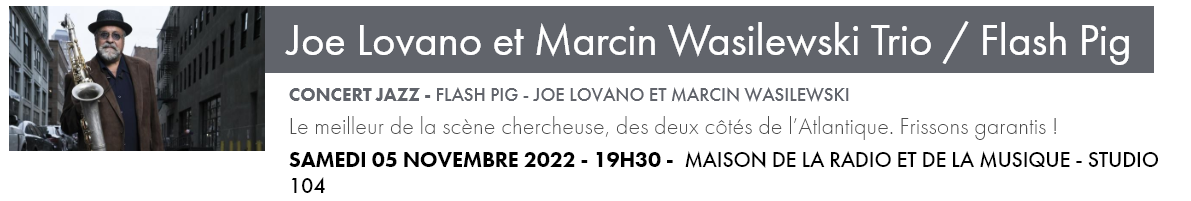 En tête d’affiche, Joe Lovano, presque septuagénaire mais plus inventif que jamais. Avec le trio du pianiste polonais Marcin Wasilewski, le saxophoniste réinvente aujourd’hui un monde sonore marqué pour toujours par de splendides compagnonnages en trio avec Bill Frisell et Paul Motian, et en quartette avec John Scofield.