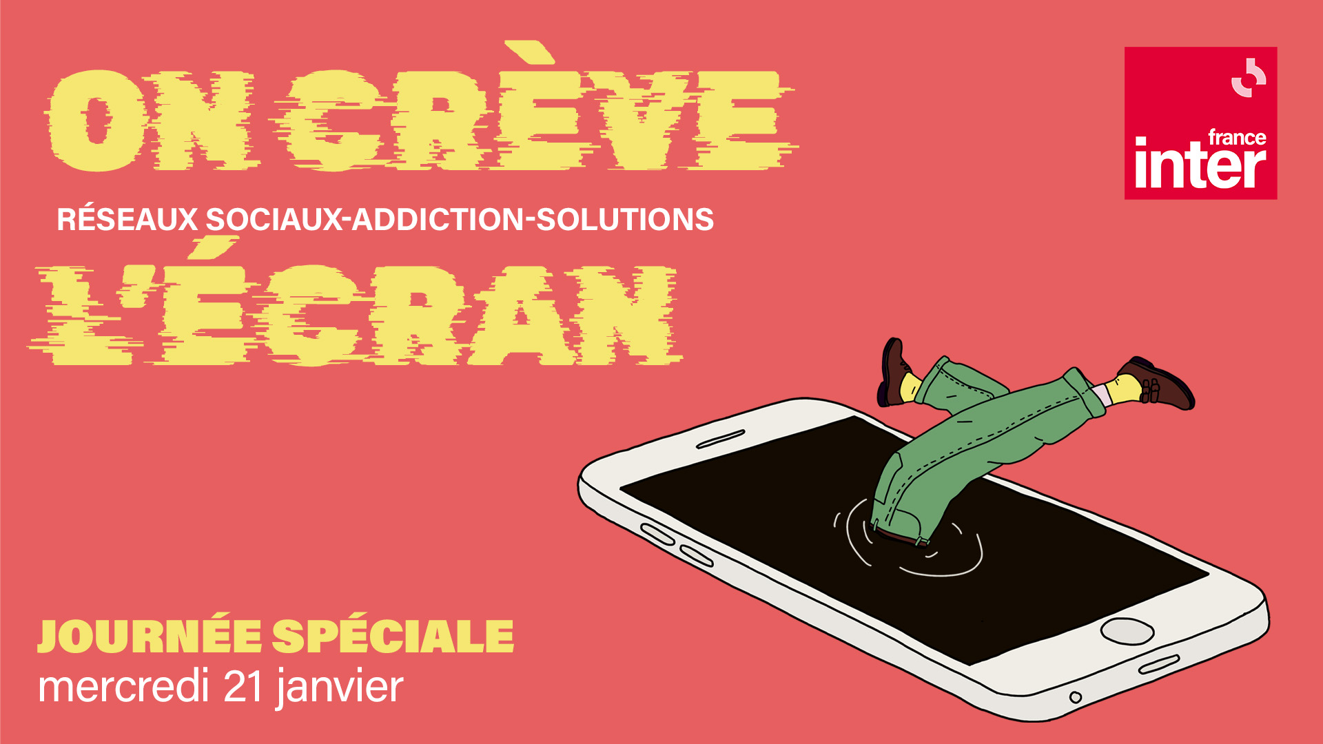 Ce mercredi 21 janvier, France Inter consacre une nouvelle journée spéciale dédiée à cet enjeu de société : France Inter crève l'écran. Une journée pour mesurer leurs impacts sur notre santé, mais surtout pour explorer des pistes concrètes : réduire la place du smartphone, questionner nos usages et imaginer des solutions pour mieux vivre avec ou sans écrans.