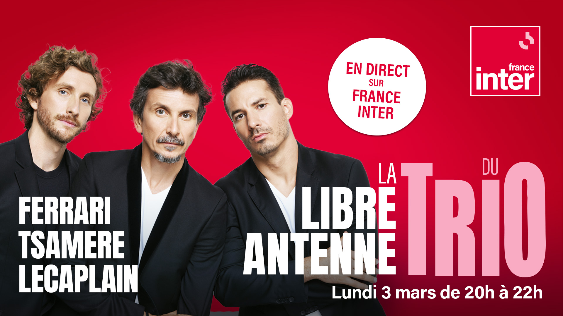 Alors qu’ils jouent actuellement leur spectacle « la tournée du trio » dans toute la France à guichets fermés – avec une retransmission en direct dans plus de 400 salles de cinéma le 18 mai à 16h30 –, Jérémy Ferrari, Arnaud Tsamere et Baptiste Lecaplain prennent les commandes de France Inter pour une soirée évènement le lundi 3 mars 2025 de 20h à 22h.