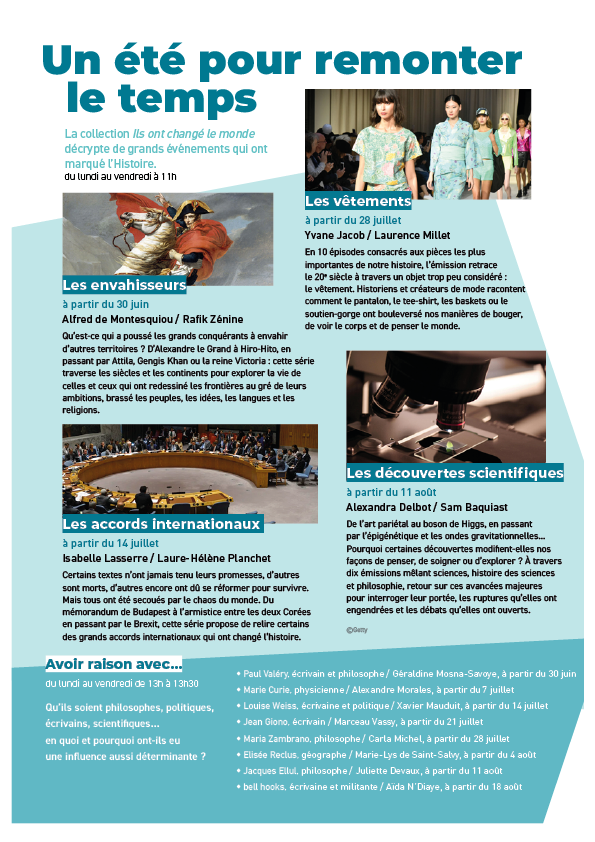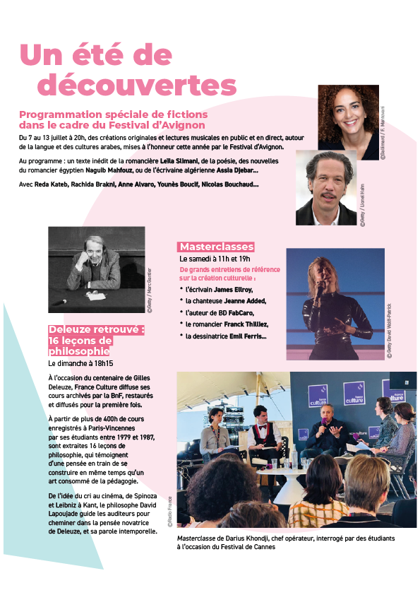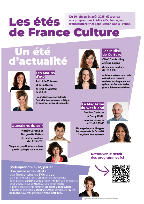"L’été est là, mais la curiosité ne prend pas de vacances sur France Culture. Du 30 juin au 24 août, embarquez pour un voyage passionnant au rythme de l'actualité, des festivals, de la création et des idées.