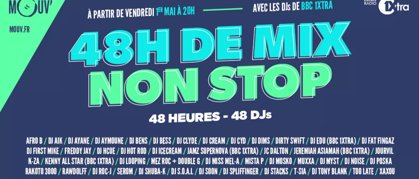 Pour l'occasion, Mouv' a réuni près de 50 DJs, de France, d'Europe et d'outre-Atlantique pour réaliser 48 heures de mix consécutives. Quatre d'entre eux officient en tant que DJ sur BBC Radio 1Xtra, la radio publique britannique du groupe BBC, spécialisée dans la musique urbaine : DJ Edu, Kenny All Star, Jamz Supernova et Jeremiah Asiamah.