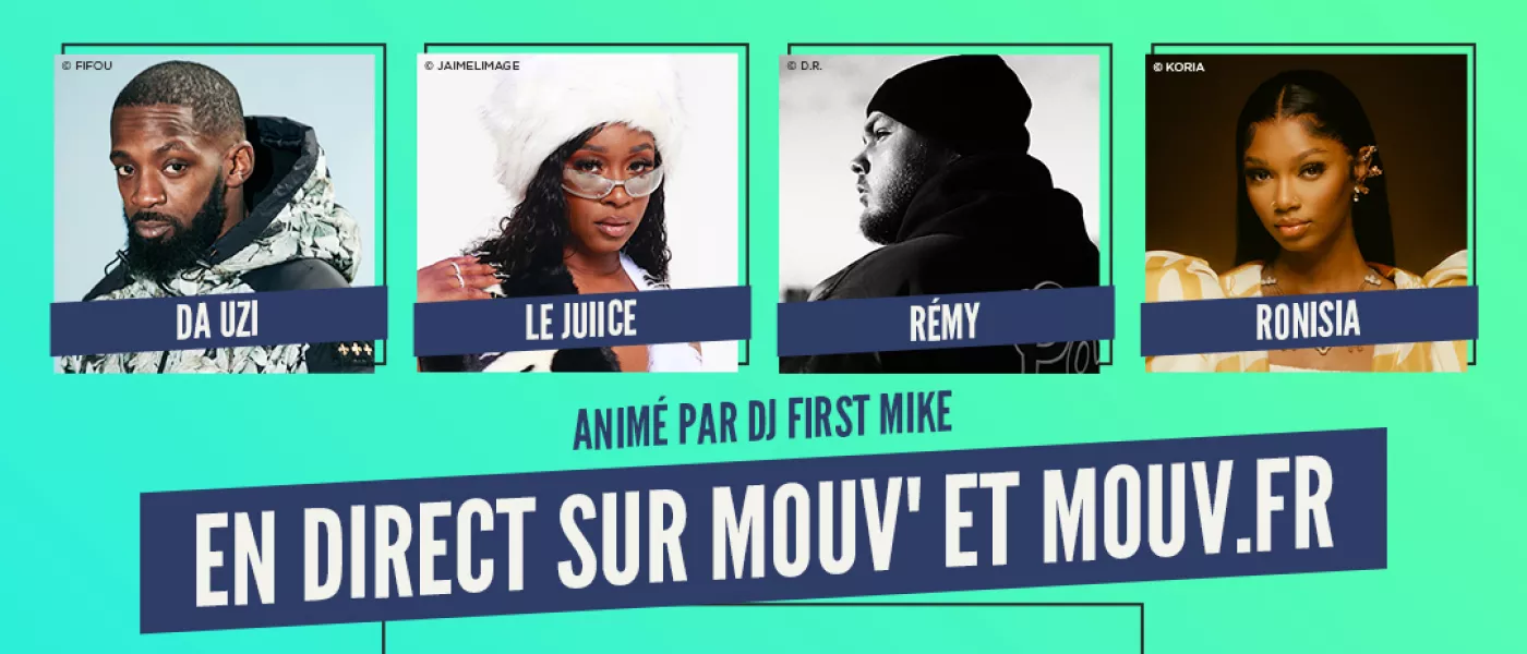 Mouv', offre à nouveau à ses auditeurs un plateau d'exception, 100% hip-hop, mercredi 16 février, à 21h en direct du Studio 104 de Radio France :