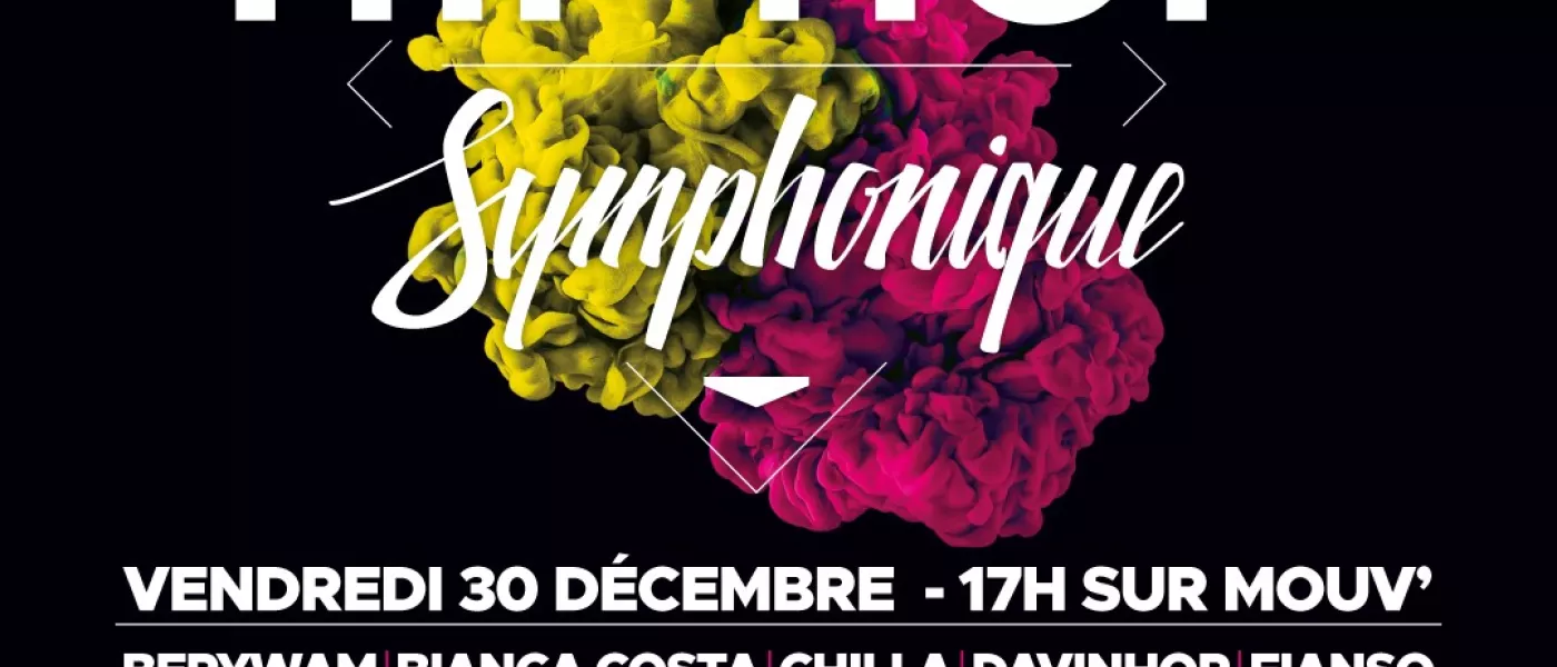 A l'occasion des fêtes de fin d'année, Mouv' propose de vivre la septième édition de Hip Hop Symphonique enregistrée le 16 novembre à l'Auditorium de Radio France. Avec Berywam, Bianca Costa, Chilla, Davinhor, Fianso, Fresh, Gazo, Kalash, Le Juiice, Soprano et Vicky R accompagnés par les musiciens de l'Orchestre Philharmonique de Radio France et du band The Ice Kream, sous la direction artistique d'Issam Krimi et la direction d'orchestre de Dylan Corlay.