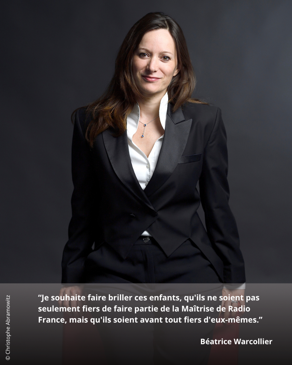 Béatrice Warcollier est cheffe de chœur, cheffe d’orchestre et pédagogue.