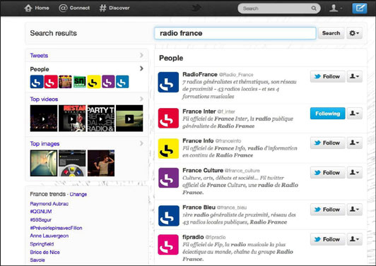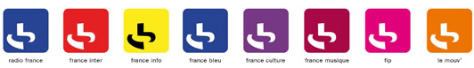 Logos, symbole commun de la Maison de Radio France, code couleur identifiant de chaque radio, et clarté graphique permettent désormais d’identifier toutes les productions numériques de Radio France sur les différents supports : Twitter, Facebook, applications mobiles, podcasts, identités des produits (sites, émissions).