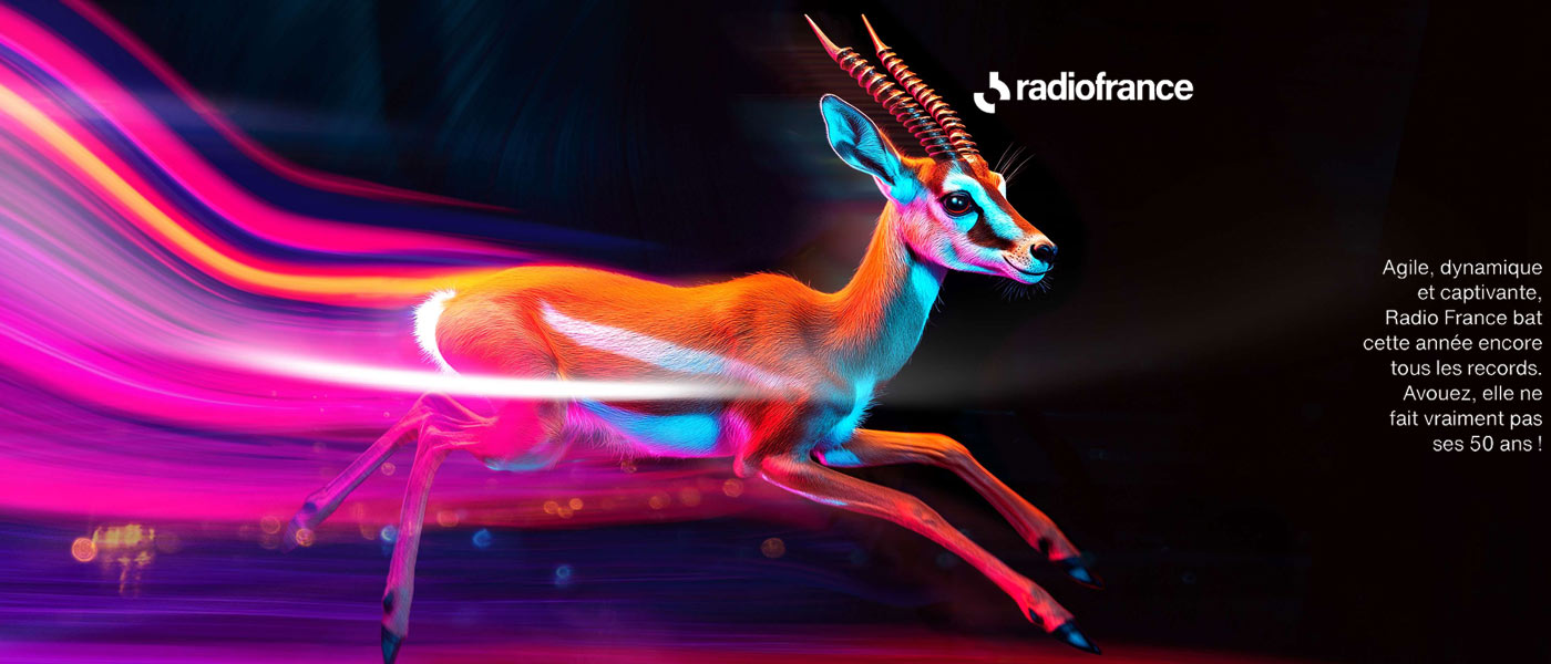 C'est ainsi que l'image d'une gazelle allant toujours de l'avant vient incarner un anniversaire si symbolique pour Radio France et célébrer l'agilité et les succès populaires de Radio France.