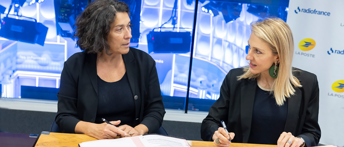 Sibyle Veil, Présidente-directrice générale de Radio France et Nathalie Collin, directrice générale de La Poste Grand Public et Numérique, ont signé un accord de mécénat pour les saisons 2022-2023 et 2023-2024. La Poste devient ainsi mécène principal de la tournée de concerts de l’Orchestre National de France (ONF) sur l’ensemble du territoire français.