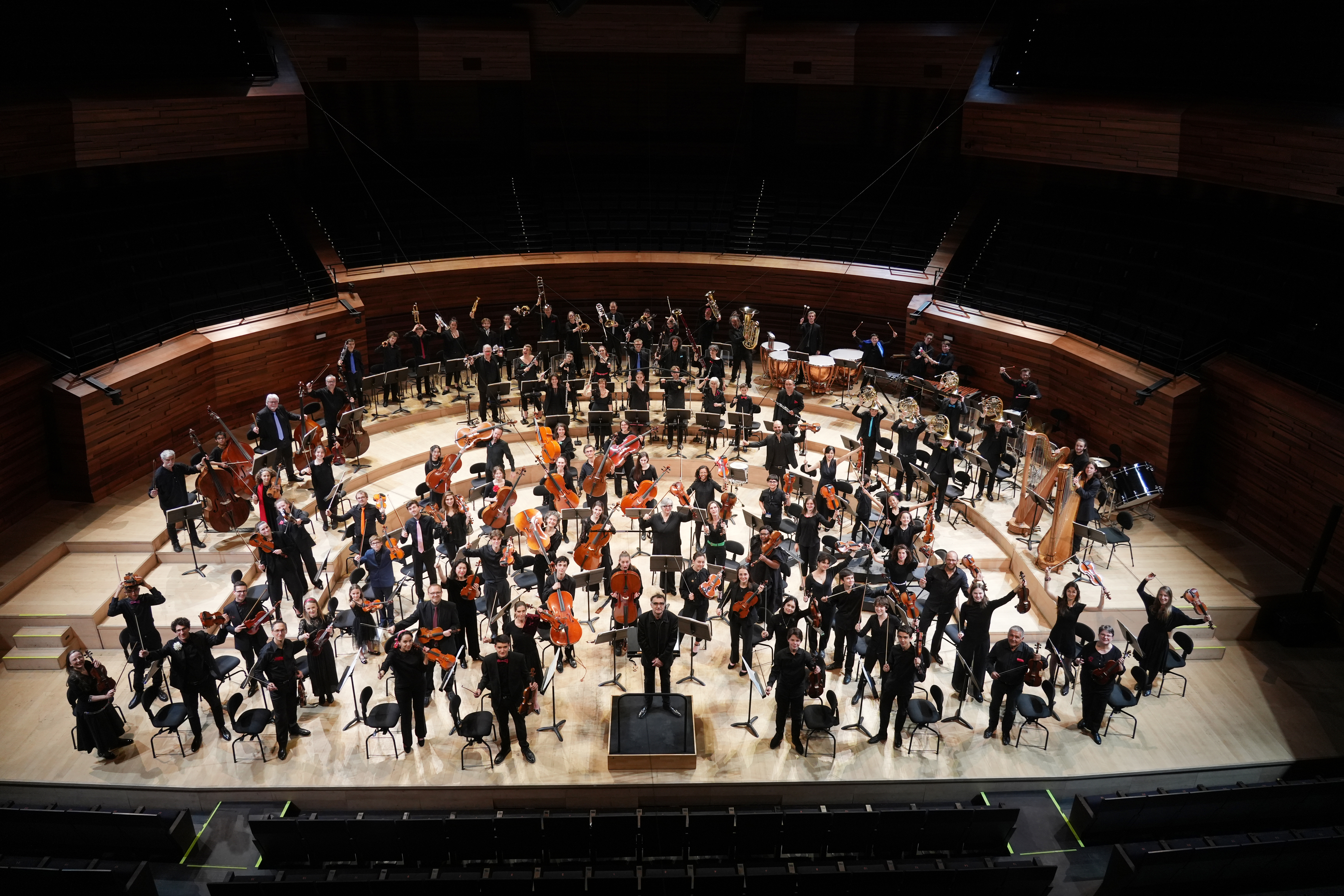 Le Studio 104, l’Auditorium et les espaces pédagogiques sont les lieux de travail des musiciens de l’orchestre amateur, qui sont mobilisés pour 16 répétitions réparties sur 6 mois et encadrées par les musiciens de l’Orchestre National.