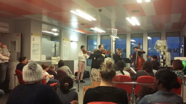 Depuis de nombreuses années, les musiciens de l’Orchestre National de France, de l’Orchestre Philharmonique de Radio France et du Chœur de Radio France affirment leur engagement au travers d’interventions en milieu carcéral, hospitalier ou en centre d’hébergement d’urgence grâce à des relais associatifs.